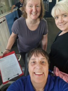 Geraldine was put through her paces at the gym last week when the tables turned and Headway members Tracey and Tessa became the gym buddies!! Tracey created a gym programme and the two ladies acted as Geraldine’s PT’s in a gruelling 45minute session! There was no room for excuses and certainly no sympathy but there was ALOT of laughter…tears of laughter in fact!! The session has inspired Geraldine to get back to the gym after a busy year. Well done ladies!
